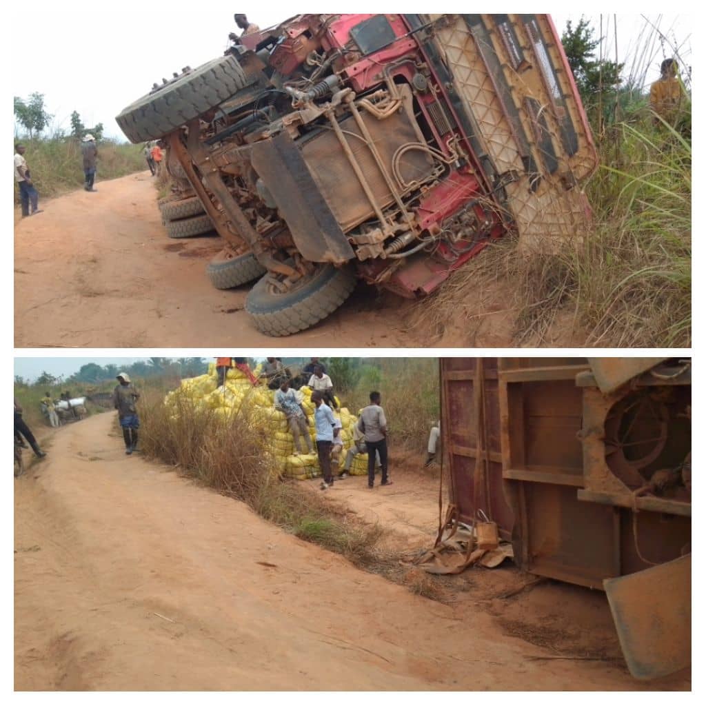 Un camion poids lourd de marque Wowo, transportant des ballots de moustiquaires en provenance du Katanga vers la zone de santé de Kamiji, s’est renversé dans l’après-midi du mardi 26 août sur le tronçon routier Mwene-Ditu–Malenga, précisément entre les villages Tshipoko et Katabayi centre. L’accident n’a causé aucune perte en vie humaine, mais un convoyeur a été légèrement blessé.